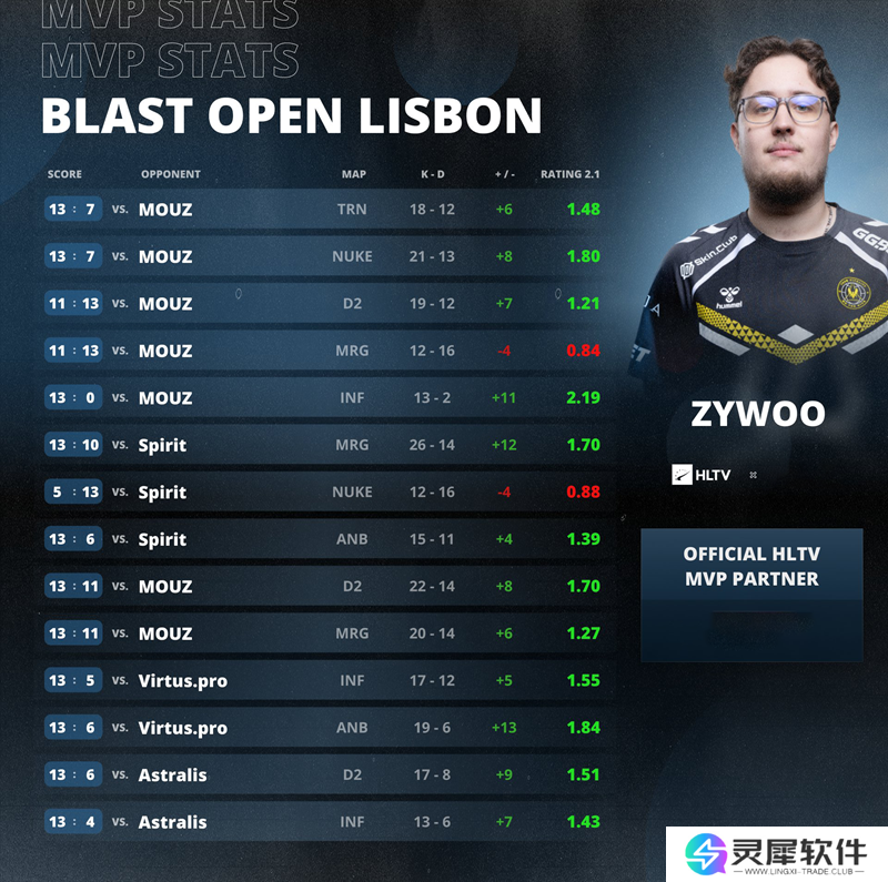 实至名归!ZywOo荣膺BLAST 里斯本公开赛 2025赛事MVP