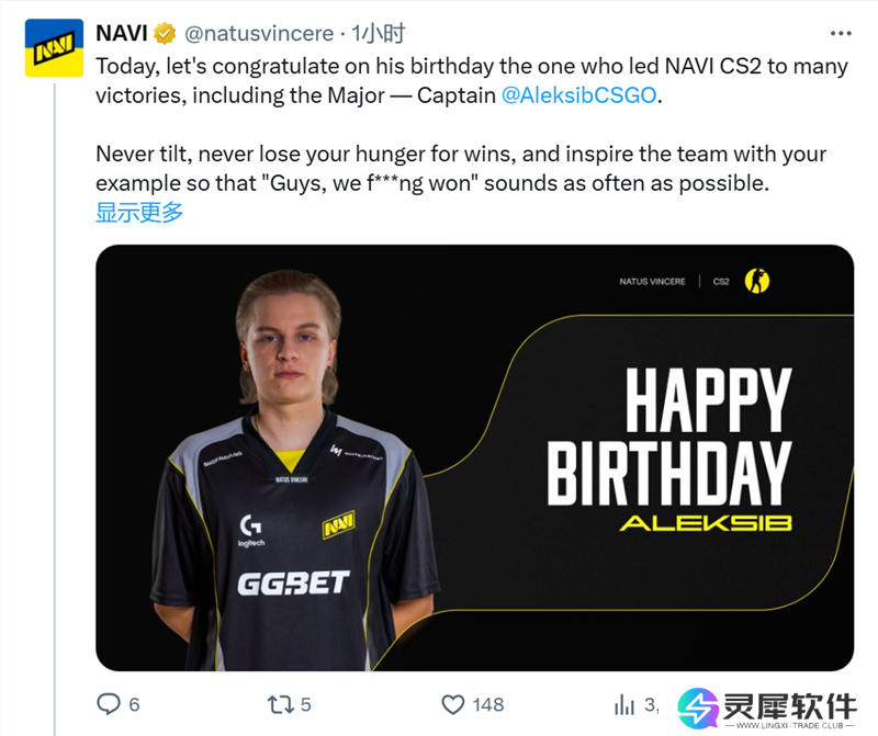 Natus Vincere官方在社交平台上祝贺CS战队队长Aleksib生日快乐。