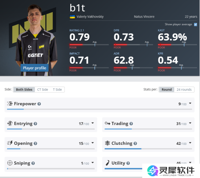 NAVI被Spirit零封出局,本次赛事以5-6名成绩获得2万美元奖金,同时b1t打出职业生涯中最糟糕的线下赛事表现,Rating仅有0.79。