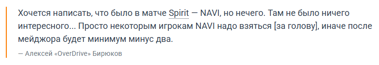 Spirit对阵NAVI的比赛内容,但实在无话可说。这场对决毫无看点……NAVI某些选手真的需要好好反省,否则Major后至少会有两人离队。”