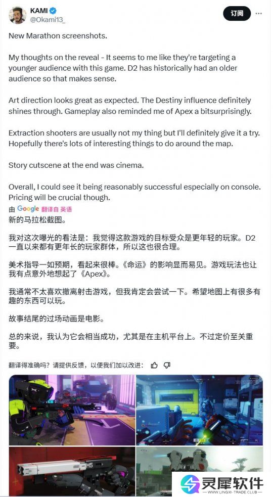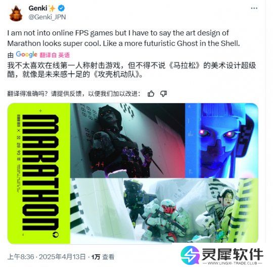 但也有知名推主大赞《失落星船:马拉松》的“前卫”艺术风格,称其像是未来版的《攻壳机动队》: