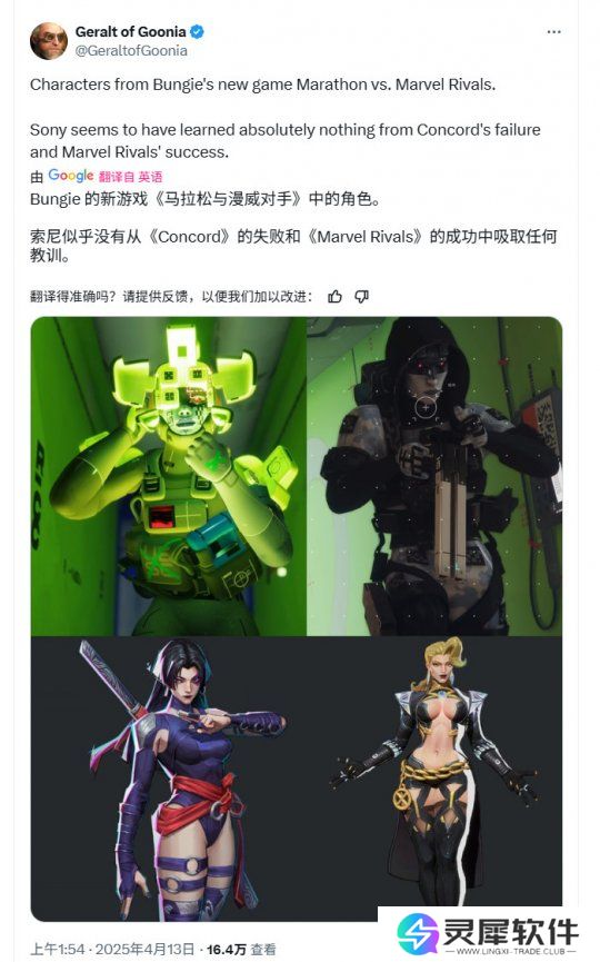 《失落星船:马拉松》公布后 粉丝批评SIE从《星鸣特攻》啥也没学到今早,Bungie正式公布了《失落星船:马拉松》,对于这款游戏,目前讨论最多的就是该作的视觉风格和角色设计。有人喜欢,有人讨厌,比较有争议。有国外玩家将《失落星船:马拉松》的角色设计和《漫威争锋》的进