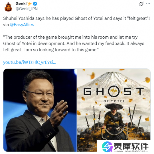 近日,前PlayStation Studios总裁吉田修平表示,他已试玩《羊蹄山之魂》,感觉“棒极了”,他很期待这款游戏!